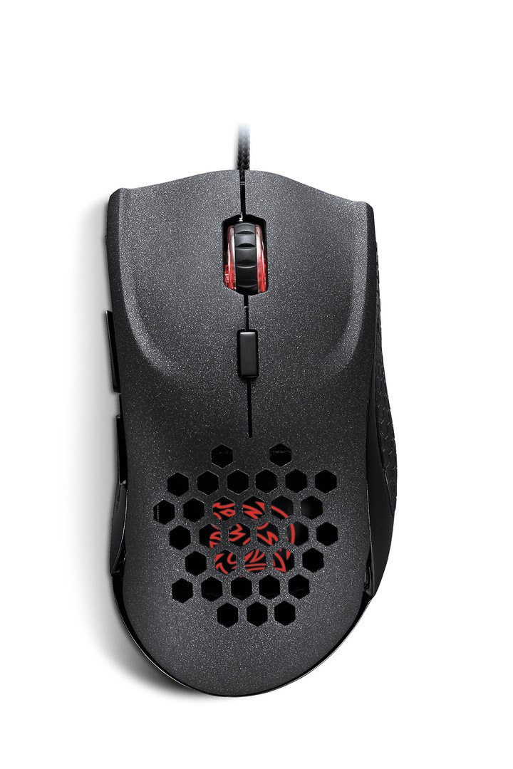 Die Gaming-Maus Ventus X verbindet eine klassische Gestaltung mit zeitgemäßer Technik. Die matte Beschichtung und Gummi-Pads an den Seiten bieten Komfort und Griffsicherheit, während das Honigwaben-Gitter Frischluft an die Handfläche lässt und die Schweißbildung verhindert. Die ergonomisch für Rechtshänder geformte Maus besitzt einen präzisen 5.700-DPI-Laser-Sensor und wendet sich an Gamer, die Wert auf neueste Technologie legen, aber klassische Formen bevorzugen.