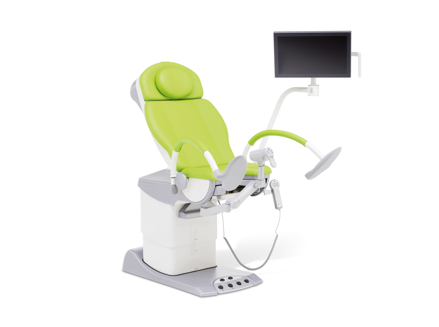 Die hellen, fröhlichen Farben des Videokolposkops schaffen in Verbindung mit den schwungvoll gebogenen Beinhaltern eine freundliche Atmosphäre.