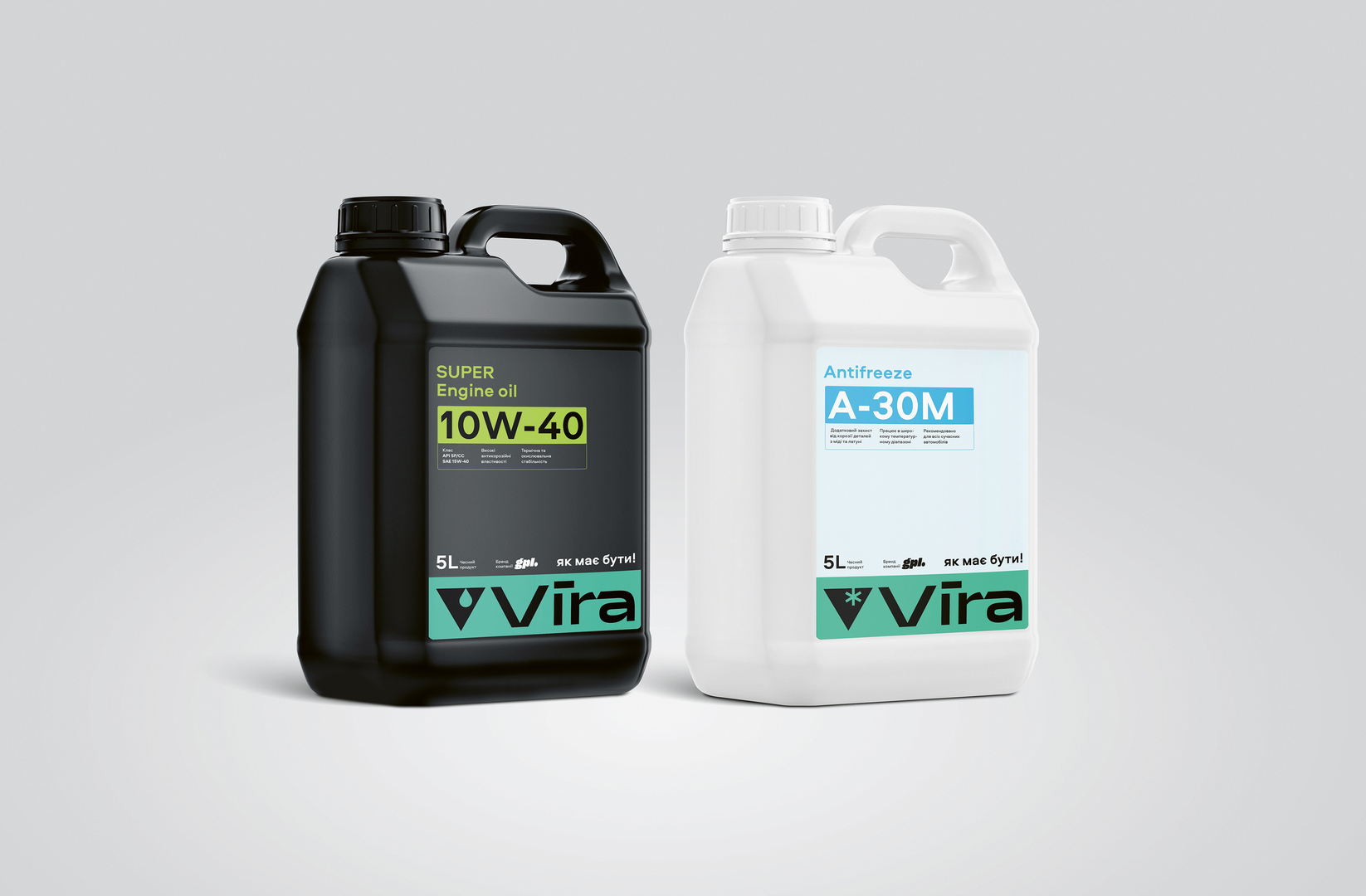 Vira is a Ukrainian brand that manufactures engine oils and lubricants for cars. The company’s product strategy is to offer good value for money. It realigned its brand strategy in order to more clearly convey the pure quality of its engine oils without additives. The brand comprises two product lines: Vira Oil lubricants and Vira Cool liquids. Therefore, the original brand name was shortened to Vira and a new logo was created. The two product lines are now marked with different symbols: a drop for oil and a snowflake for antifreeze.