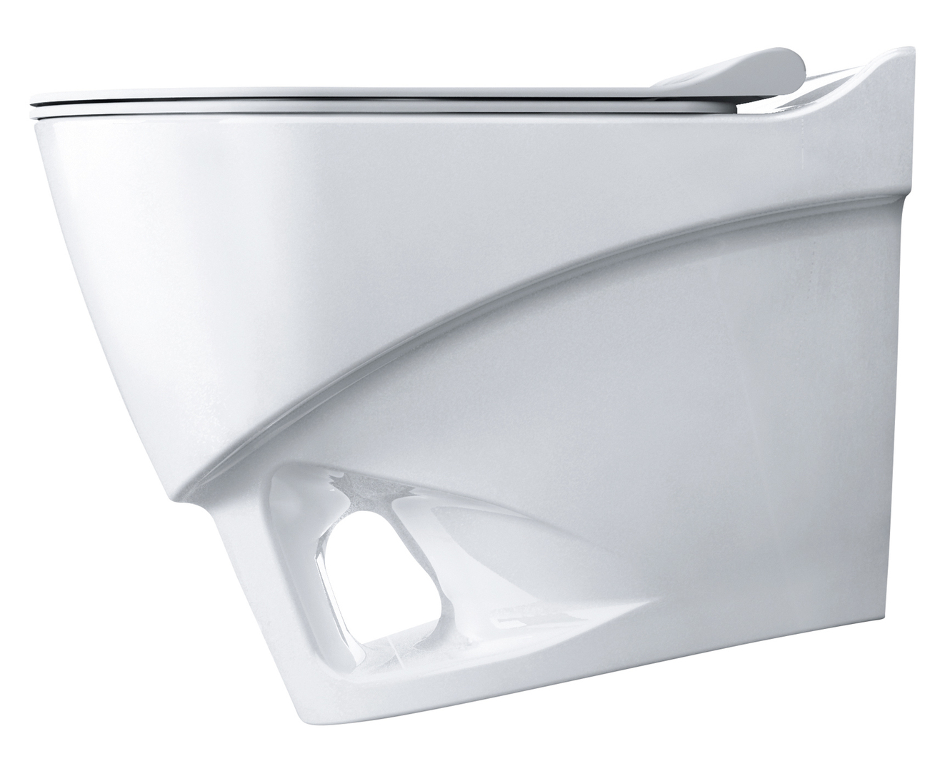 Das Wand-WC aus hochwertigem Glasporzellan schafft eine eigenständige Definition des Begriffs „organisch“, indem seine Form auf elegante Weise an die Anatomie menschlicher Knochen erinnert. Mit einer Spülmenge von 4 bzw. 2,5 Litern arbeitet das System vergleichsweise ökonomisch. Ein sehr dünner Deckel und das versteckte Installationssystem verstärken den positiven ästhetischen Gesamteindruck.