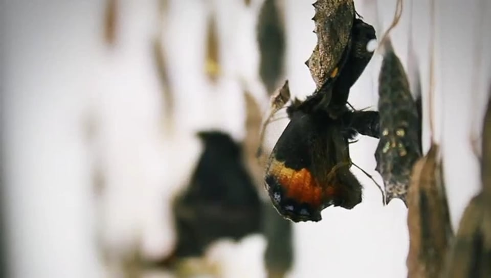 This typographic short film was created for the opening of a design office in Fürth near Nuremberg. The main actors are more than 500 larvae of the native but rare butterfly species Little Fox, obtained from a breeder in Switzerland. The cocooned caterpillars were carefully prepared and arranged on a wall to form the slightly offset sentence “we are open”. The film shows the words coming to life: the butterflies hatch and flutter away, embarking on their first flight. Thus the film not only effectively announces the “birth” of the studio but also subtly translates into moving images the design studio’s philosophy: the transformation of something gossamer and nondescript into something new and graceful.