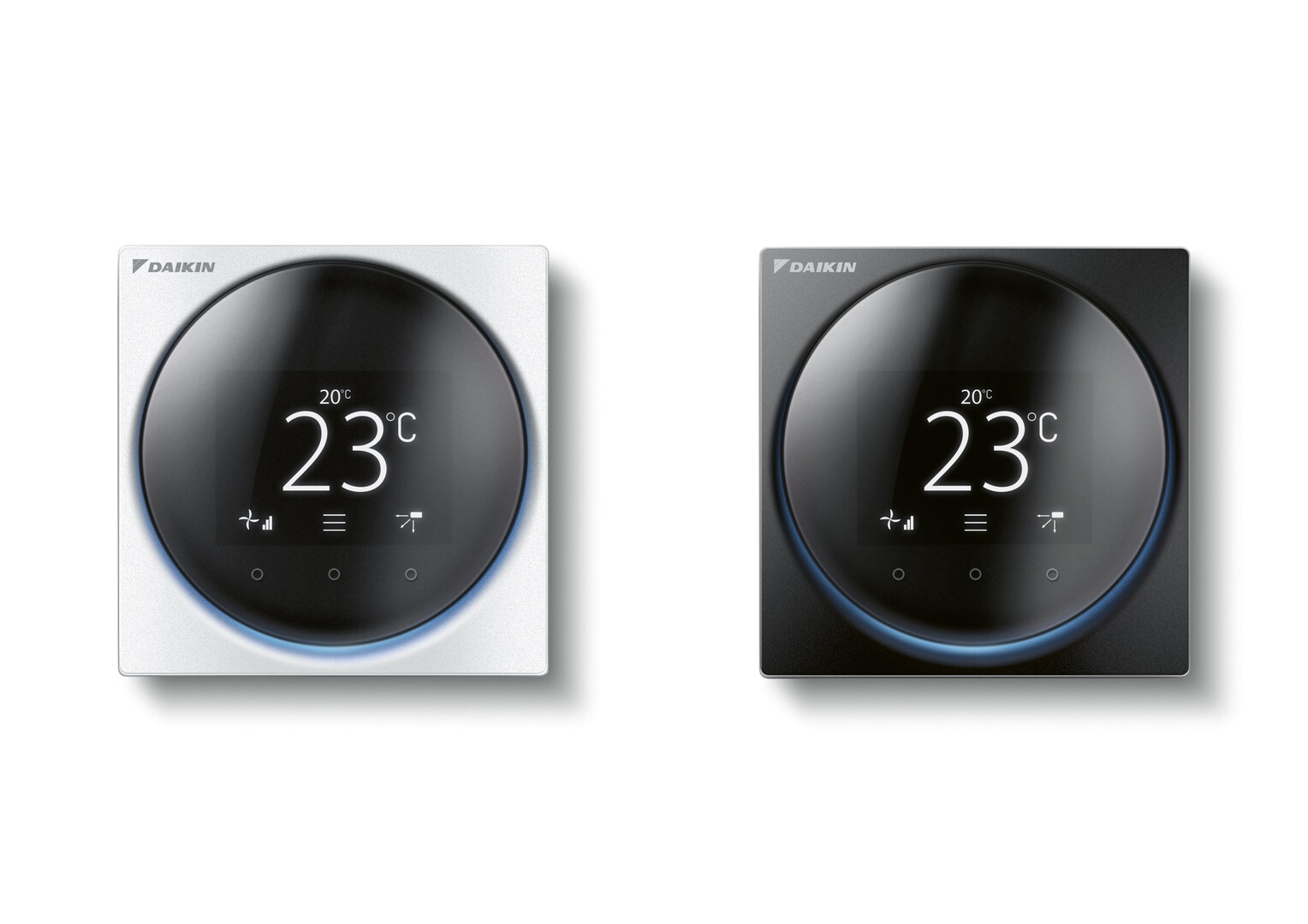 Unterschiedliche geometrische Formen fügen sich bei diesem Raumregler zu einem harmonischen Ganzen. Seine Handhabung ist sehr nutzerorientiert.