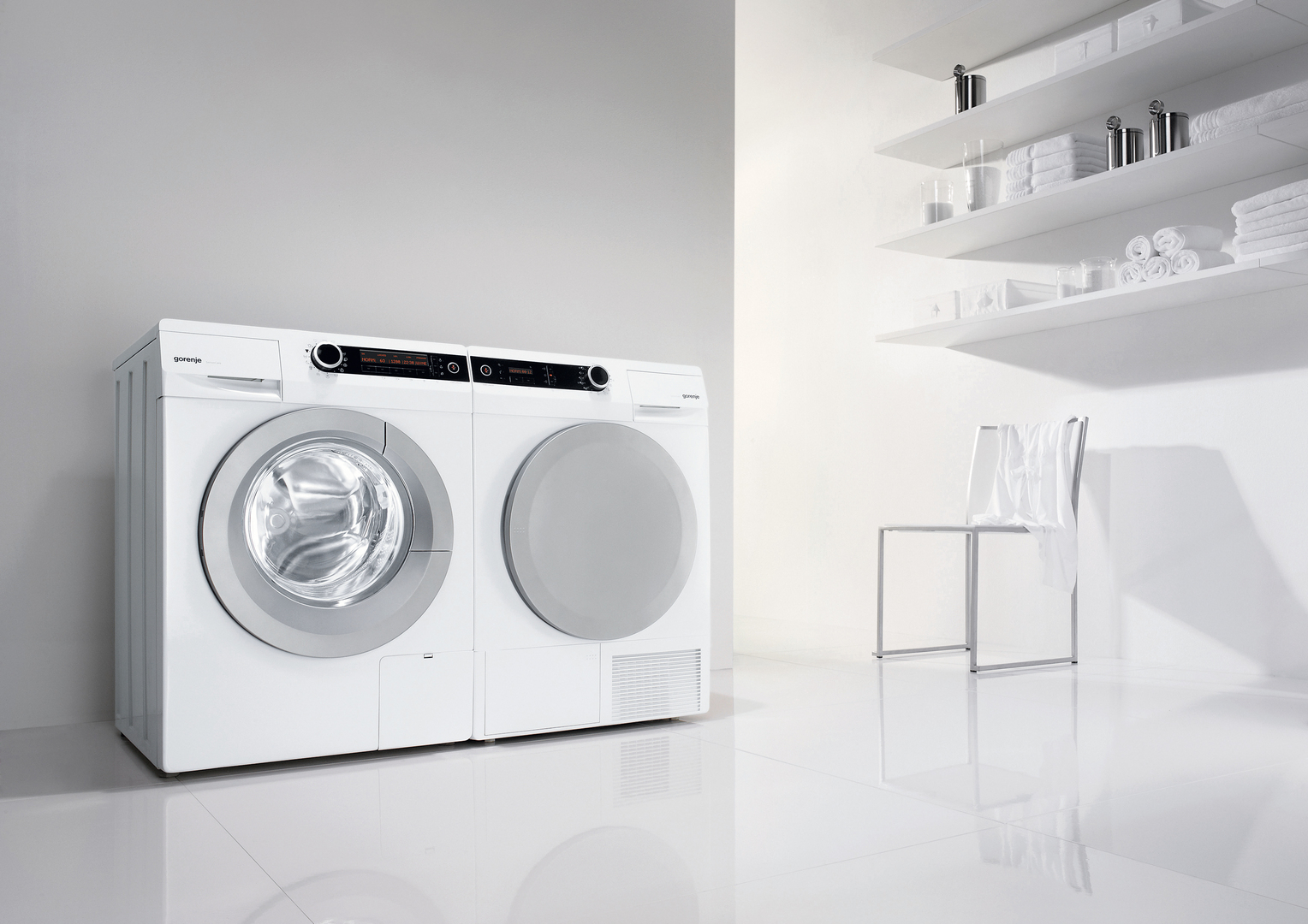Die Formensprache der SensoCare Waschmaschine strebt eine eigenständige, technikorientierte Ästhetik an. Mit ihrer geneigten Frontblende erleichtert die Maschine die Sicht auf eine präzise konstruierte Bedienoberfläche. In nur zwei Schritten lassen sich dort die einzelnen Waschprogramme auswählen, wobei die am häufigsten genutzten Programme farblich hervorgehoben sind. Die patentierte Türöffnung bedarf deutlich weniger Kraft. Ökologisch sinnvoll ermöglichen Trommelform, spezielle Rippen und zahlreiche Sensoren vergleichbar schnellere Waschvorgänge.
