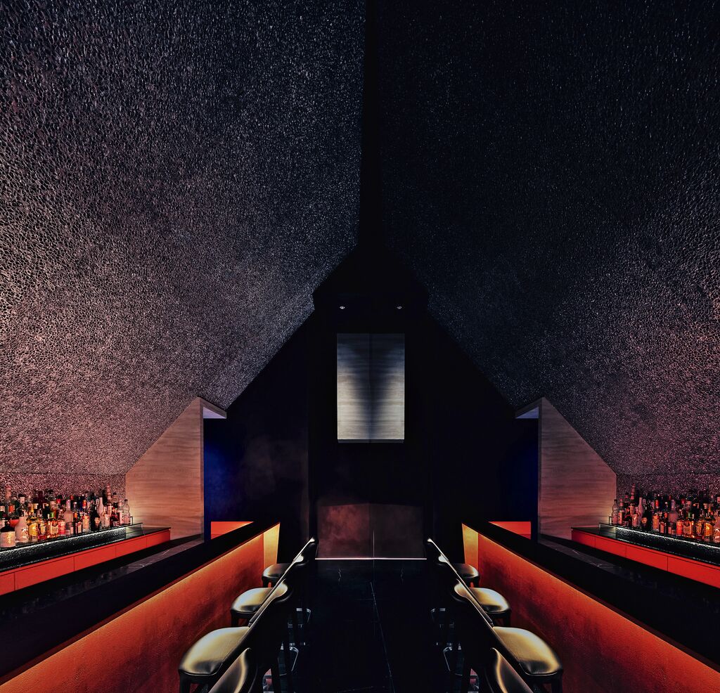 Das Spiel mit verschiedenen Strukturen und Ebenen erzeugt bei diesem Designkonzept ein beeindruckendes, skulptural anmutendes Raumerlebnis.