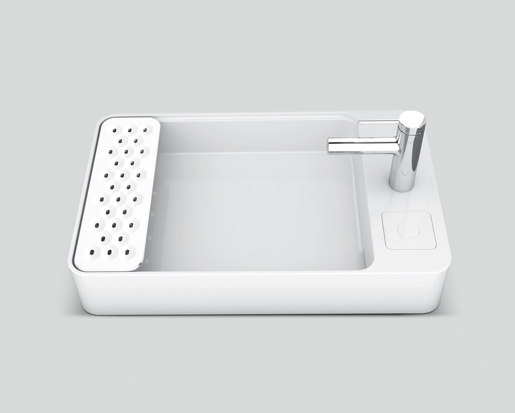 Ein besonderer Materialeinsatz trägt den heutigen Ansprüchen an Stabilität und Sauberkeit Rechnung. Die Ablage ist funktional und zugleich ein wirkungsvolles Gestaltungsmerkmal.