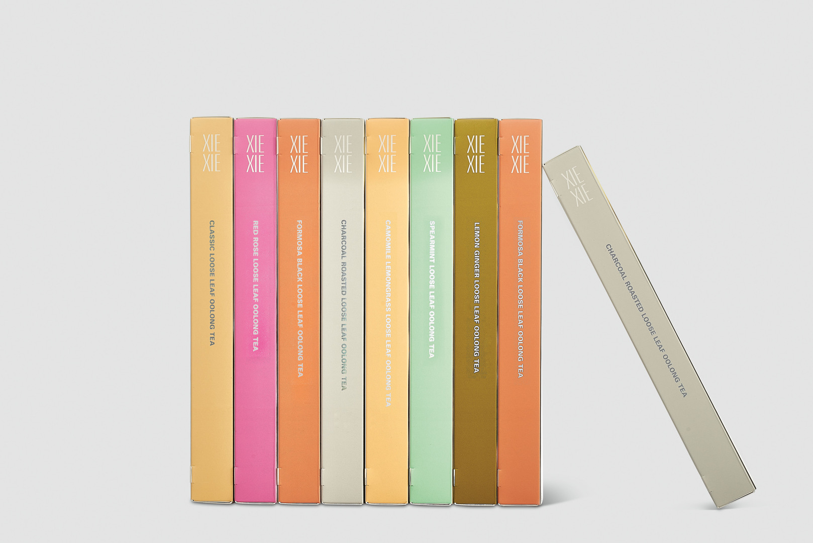 Tea of a superior quality should be savoured at the best times of the day, in the same way as a good book that we return to with pleasure as soon as we have a moment free. To enhance this association, the XIE XIE packaging assumes the shape and spirit of a book: it is opened from a cover articulated along a smooth back, and is placed vertically on a shelf, to be consulted as much as it is drunk. On each front cover there is a full page of the blurred image of a place that haunts our memory: a rock garden in Kyoto, an alley in Beijing, a line of roofs in Paris. On top of this image, a free, abstract form stands out, marking one of the seven colours of the XIE XIE range. Derived from a Japanese pigment, it is prepared using natural plants and minerals.