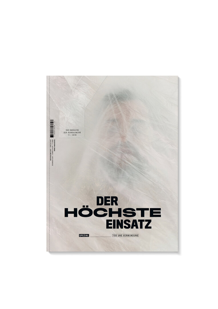 This special issue of “Y” magazine by the Bundeswehr (German Federal Armed Forces) comprises four chapters dealing with the topics of one’s own death, killing in military action, being injured and grief when losing a comrade. The aim was to approach the achievements of soldiers, but also their ultimate commitment and the risk they take of losing their lives, in a manner appropriate in terms of both content and images. The cover design shows the picture of a dead body under a plastic sheet in order to directly yet unobtrusively allude to the topic of death.