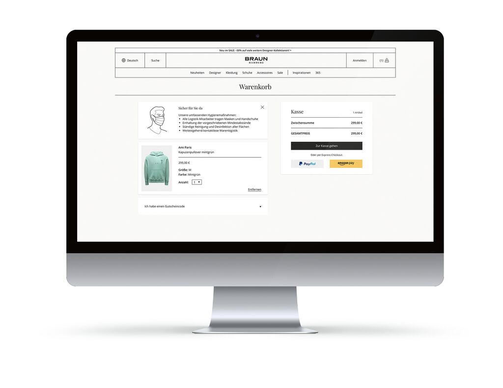 BRAUN Hamburg is an exclusive men’s outfitter that carries a high-quality selection of international designer and luxury labels. The requirements for the e-commerce relaunch of the website were that the trust of the customers and the high level of advisory competence that the owner-managed family business has built up over the years should also be advertised digitally. In addition, new customer groups were also to be tapped. The result is an online shop in which elegance meets modernity and which combines a minimalist design with maximum information density. The distinctive, editorial look is characterised by a reduction that reflects the elegance of the men’s outfitter and was designed in reference to the company’s history. The restrained colour choice in pure white offers orientation and keeps a clear focus on the image content. The teaser “What’s trending” acts as a visual guide and guides visitors intuitively through the website to attractive offers. The high level of user-friendliness created in this way merges with the magazine-like content and the profound industry knowledge to create a website with a presence that is exciting to experience.Statement by the juryThe design strategy of the e-commerce relaunch of the website for the men’s outfitter BRAUN Hamburg impresses with its consistency in terms of clarity and elegance. The overall visual minimalism and the strictness of the grid design consistently direct the visitor’s focus to the content and the high-quality fashion items presented. The website leaves a distinctive impression on visitors and is easy to browse thanks to a simple, very cleverly implemented interface.