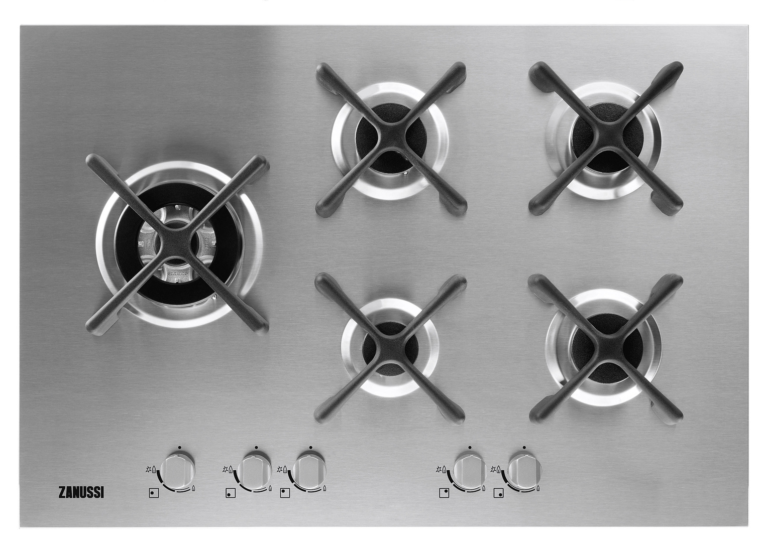 Diese 75 cm breite Gaskochmulde aus Edelstahl bietet eine großzügige Kochfläche für unterschiedliche Töpfe und Pfannen. Prägnant wirkt die Formensprache der Topfträger. Der Wok-Brenner ist bequem auf der linken Seite platziert, um auch größeres Kochgeschirr verwenden zu können. Die ultraflach gestaltete Mulde ist einfach zu reinigen und die Selbstentzündung eignet sich hervorragend für die Bedienung mit einer Hand.