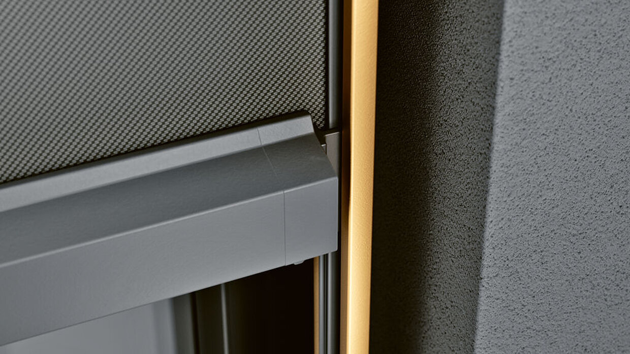 Die Senkrechtmarkise zipSCREEN F50 beeindruckt durch die schlichte Eleganz ihres geschlossenen Erscheinungsbildes sowie die durchdachte Anbringung an jedem Fassadentyp.
