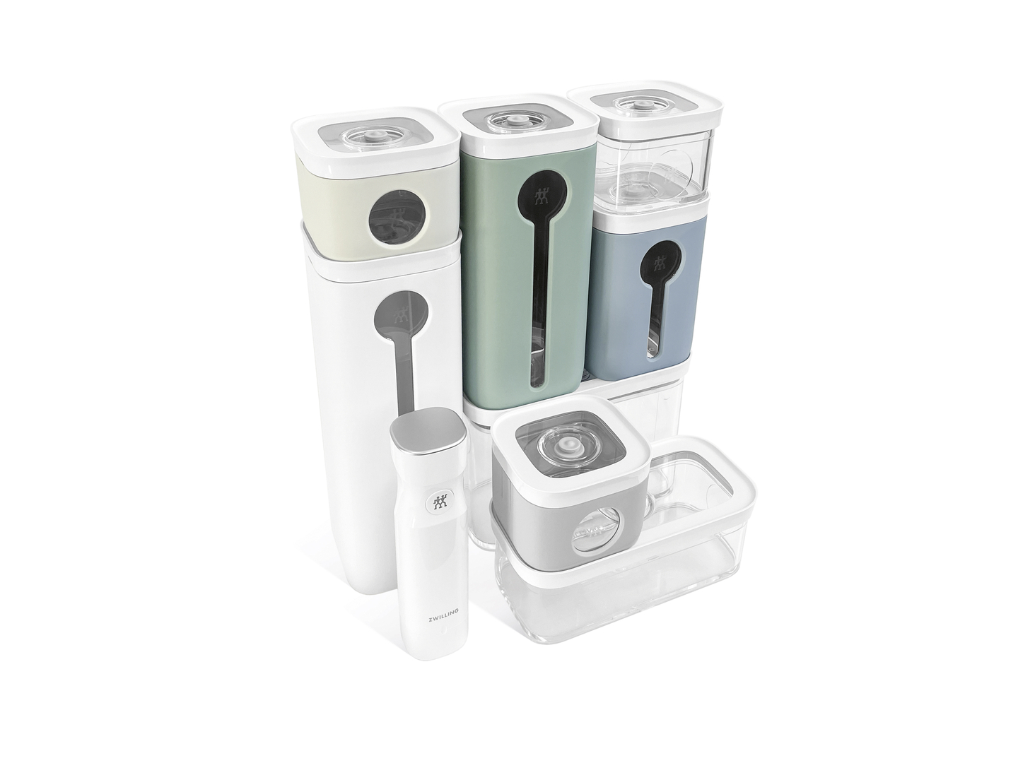 ZWILLING FRESH & SAVE CUBE umfasst stabile, stapelbare und modulare Aufbewahrungsboxen aus BPA-freiem Kunststoff. Die luftdicht schließenden Deckel mit Vakuumpumpe schützen Inhalte vor Feuchtigkeit und Schädlingsbefall und halten Lebensmittel länger frisch. Innovative Smart-Labels, die sowohl handschriftlich beschreibbar als auch digital via Smartphone scannbar sind, ermöglichen eine effiziente Vorratsverwaltung per App. Zusätzlich bieten lichtschützende Außenhüllen individuelle Gestaltungsmöglichkeiten.