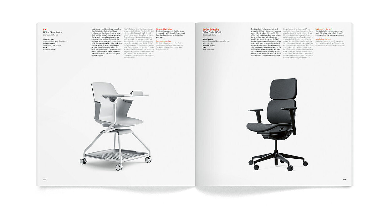 Ein weiteres Highlight der Publikation sind die Interviews: So sprach Red Dot mit Roland Heiler und Christian Schwamkrug von Studio F. A. Porsche, dem Red Dot: Design Team of the Year 2021, über Markenwerte, den Schlüssel zum Erfolg, Nachhaltigkeit und Herausforderungen im Arbeitsalltag. Die Designer hinter den besten Produkten des Jahres werden im Rahmen von individuellen Interviews vorgestellt. Die Juroren des Wettbewerbs präsentieren darüber hinaus die Produkte, die sie besonders beeindruckt haben.
