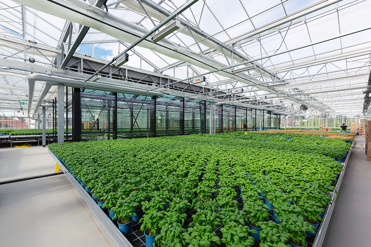 Hier läuten wir eine neue Generation grüner Märkte bei REWE ein. Auf der Dachfarm, die vom REWE-Partner ECF Farmsystems betrieben wird, wachsen mittels Aquaponik jährlich 800.000 Basilikumpflanzen, die als Dünger die Ausscheidungen der Fische erhalten, die REWE vor Ort züchtet, schlachtet und verkauft. Hierbei werden keinerlei Pestizide verwendet. Das folgt der Vision des selbstproduzierenden Supermarkts.