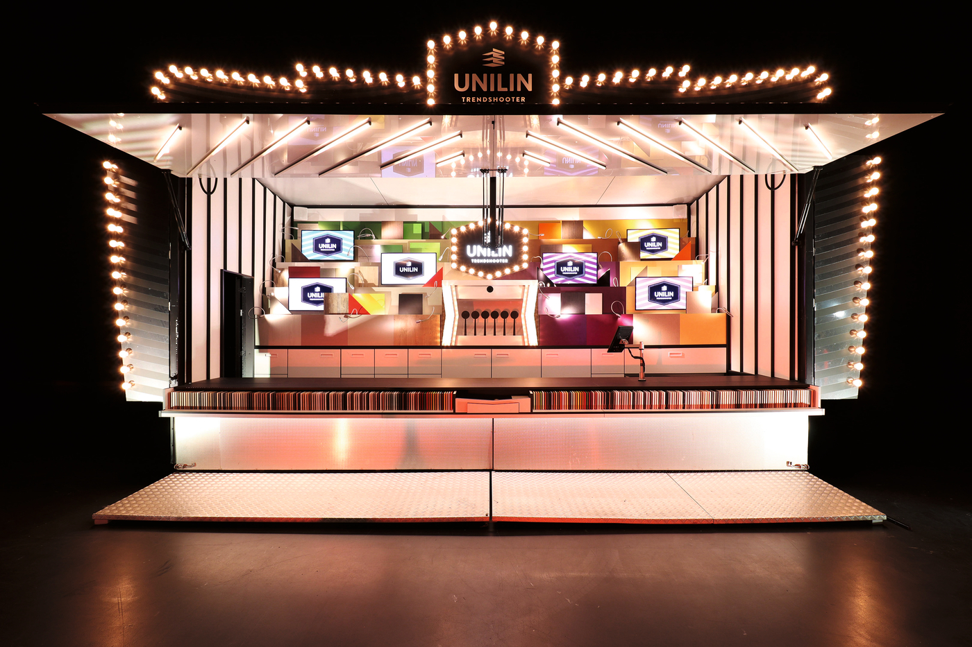 Every King George client knows our penchant for madness and our urge to do things differently. In fact, that is why they come knocking on the kingdom’s door, because they want something innovative, a cutting edge. This was also true in the case of Unilin Panels as they were looking for a creative way to present their products. And don’t we all want some fun instead of yet another trade fair stand with the usual display of products and the usual samples offered? At King George, we know how to play!
