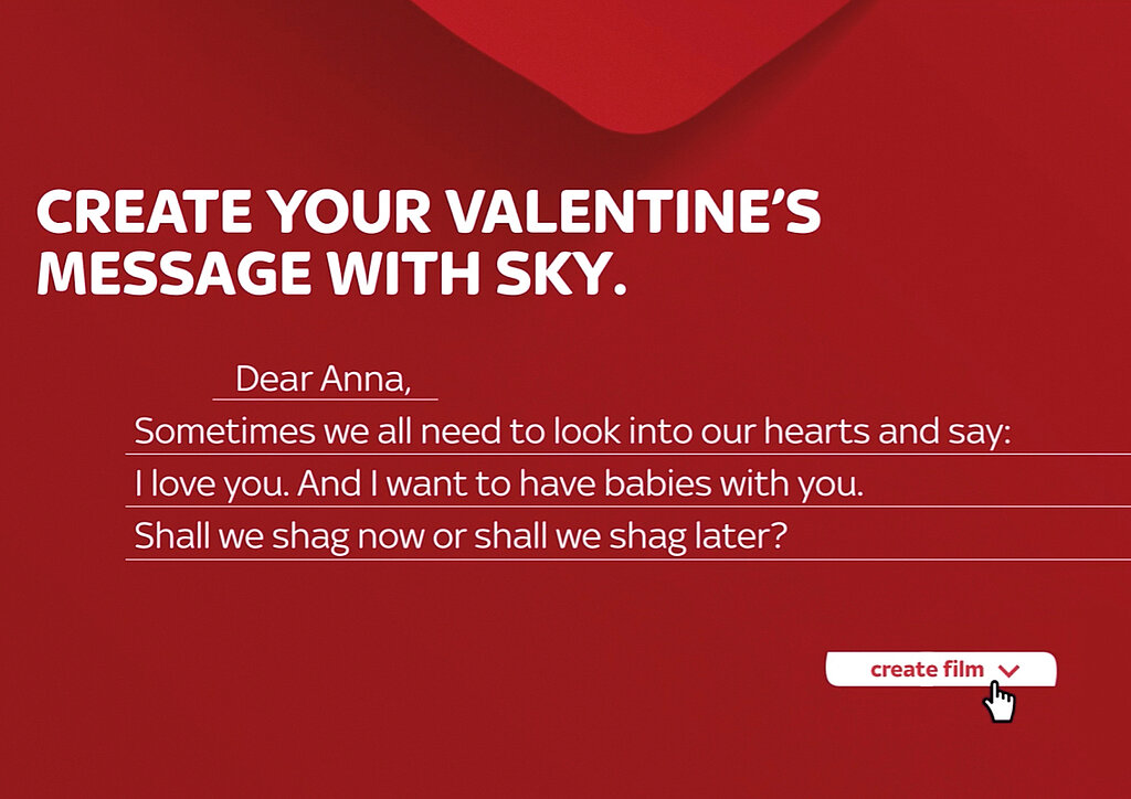 Where 19th-century Valentine’s cards relied on standardised symbols and prewritten verses, the digital campaign Say it with Sky shows how Valentine’s design has evolved. Ahead of Valentine’s Day, a dedicated website allowed users to create personal love messages from snippets of 845 romantic films. An AI tool matched lines with users’ messages, even suggesting more creative options, producing short, personalised clips combined with a Sky offer. Unlike static, mass-produced cards, the campaign turned romance into an interactive, co-created experience, showing how modern Valentine’s design can shape emotion as well as display it. The digital campaign was awarded a Red Dot in 2019.