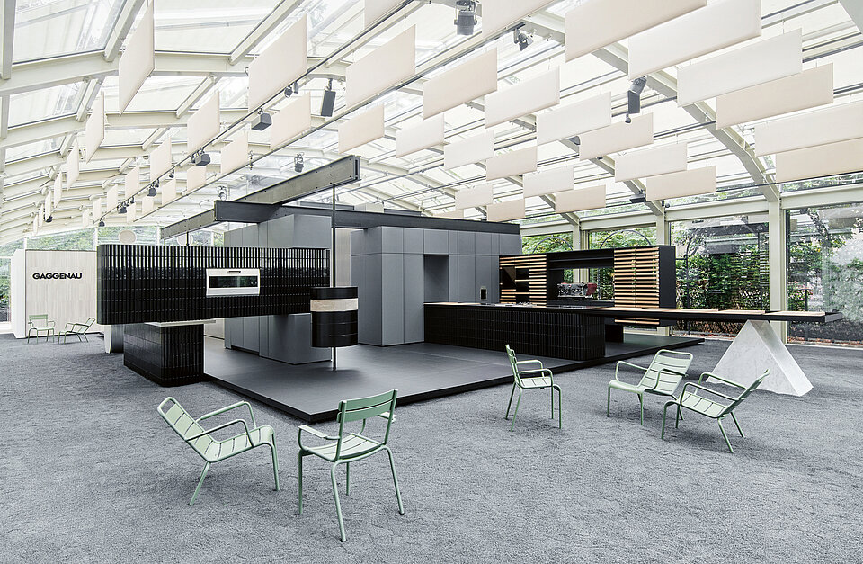 From the very beginning, it was our intention to treat this location with great respect – yet, nevertheless, to develop a bold and independent approach to presenting the Gaggenau brand. Accordingly, we created a concept in which echoes of 1930s architecture in Italy are combined in an abstract spatial installation with the values and characteristic features of the brand to create a unique composition. Finding the right balance was a very challenging process.