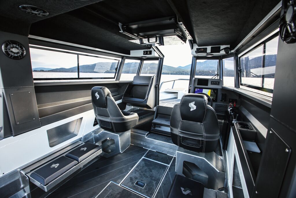 This trailer boat amazes with its elegant and flowing aluminium construction. Innovatively expanding the possibilities of this material in boat building, it fascinates with its highly expressive design that convinces with a successful balance of functionality and aesthetic qualities. This trailer boat allows moving comfortably in coastal waters by inviting passengers to take in the impressions in a relaxed manner.