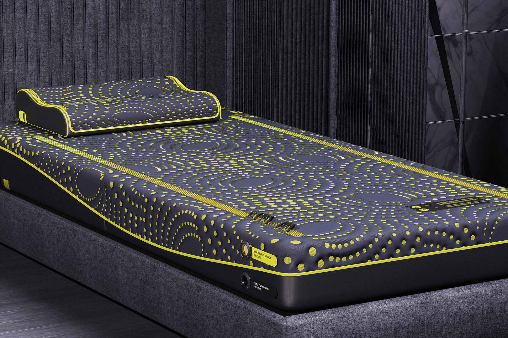The 3D Surrounding Sleeping Pool with gyromagnetic technology is composed of a body curve bridge layer, a gyromagnetic matrix layer, and a functional fabric layer. The functional fabric layer is made of Bian stone fibre, a high-tech environmental protection fabric that contains 32 different types of beneficial microelements and minerals that act on the surface of human skin and produce far-infrared radiation. In addition, zinc oxide polyester fibre is used to provide effective and long-lasting antibacterial and deodorising properties.