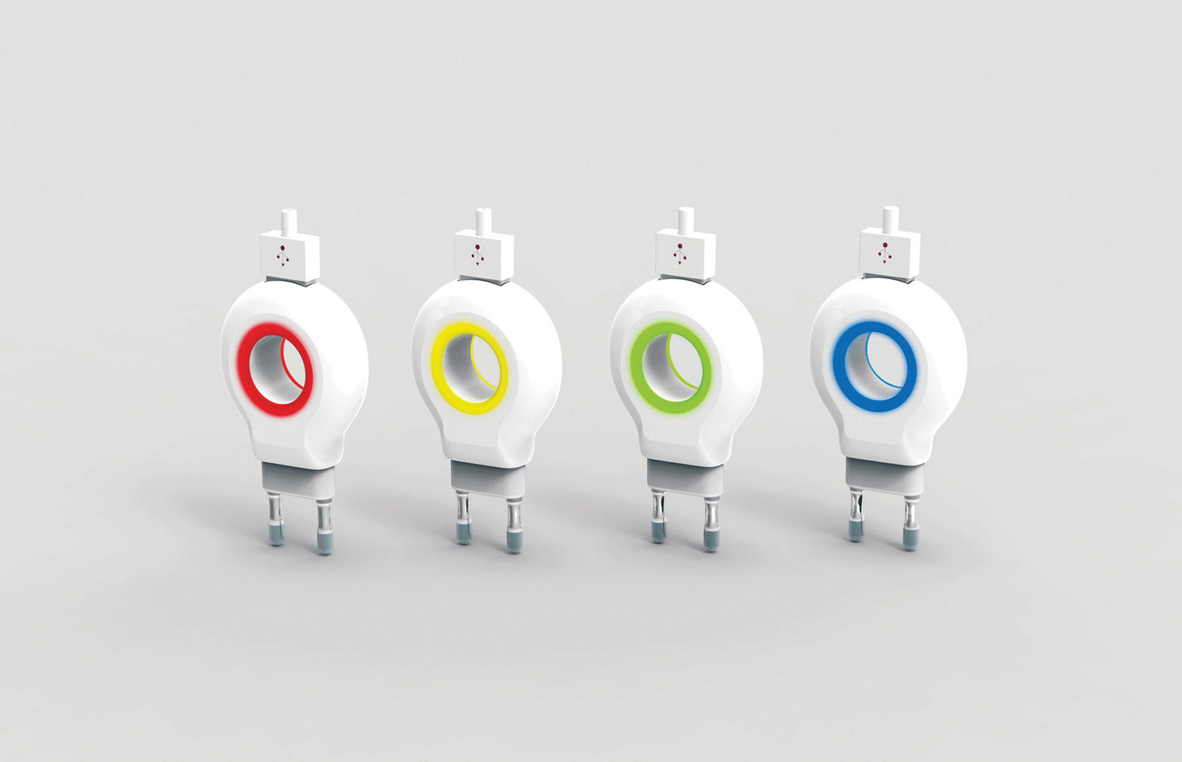 Moreover, a problem with previous power adapters is that they are sometimes difficult to remove from the wall socket. 4Color - Charger proposes a donut shape to give better grip when removing the adapter from the socket.