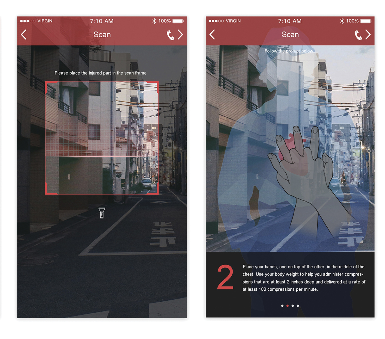 AID+ is an APP that assists caretakers with their patients in the event of sudden illness. It teaches some basic first-aid knowledge and provides an emergency function. Users select the type of illness according to the patient's symptoms, enter the scan function and dial for first-aid using the one-touch emergency call function. While waiting for medical personnel to arrive, use the tips in the APP to locate the injury and place it in the scanning frame. Then, systematic instructions are promptly provided by the AR technology. The user only has to follow the steps to seize more time for first aid. AID+ uses AR technology to achieve a higher functional value in a medical emergency. The APP allows users to organise or participate in real-time professional first-aid learning. The AR technology calculates the location and angle of the camera image in real time and adds the corresponding image—the goal of which is to allow users to interact virtually with other users and professionals around the world. All in all, the AR system has three prominent features: information integration of the real and virtual world, real-time interactivity, and the ability to superimpose a virtual object in a 3D space. Red Dot Award: Design Concept | Concept | Service