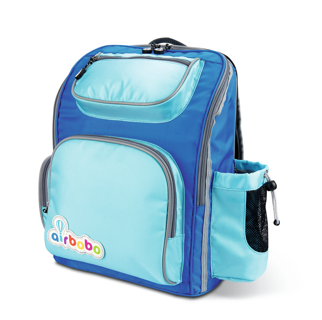Air cushion padding on the shoulder straps and in the back section are the prominent features of this children’s backpack. The air cushions are of slightly different sizes, in a grid arrangement and thus create a “Twin Arch Back System”, a surface which adjusts itself to every motion of the carrier’s back and supports the spine. The use of air cushions and a light material derived from recycled PET bottles contribute to the considerable lightness of the airbobo.