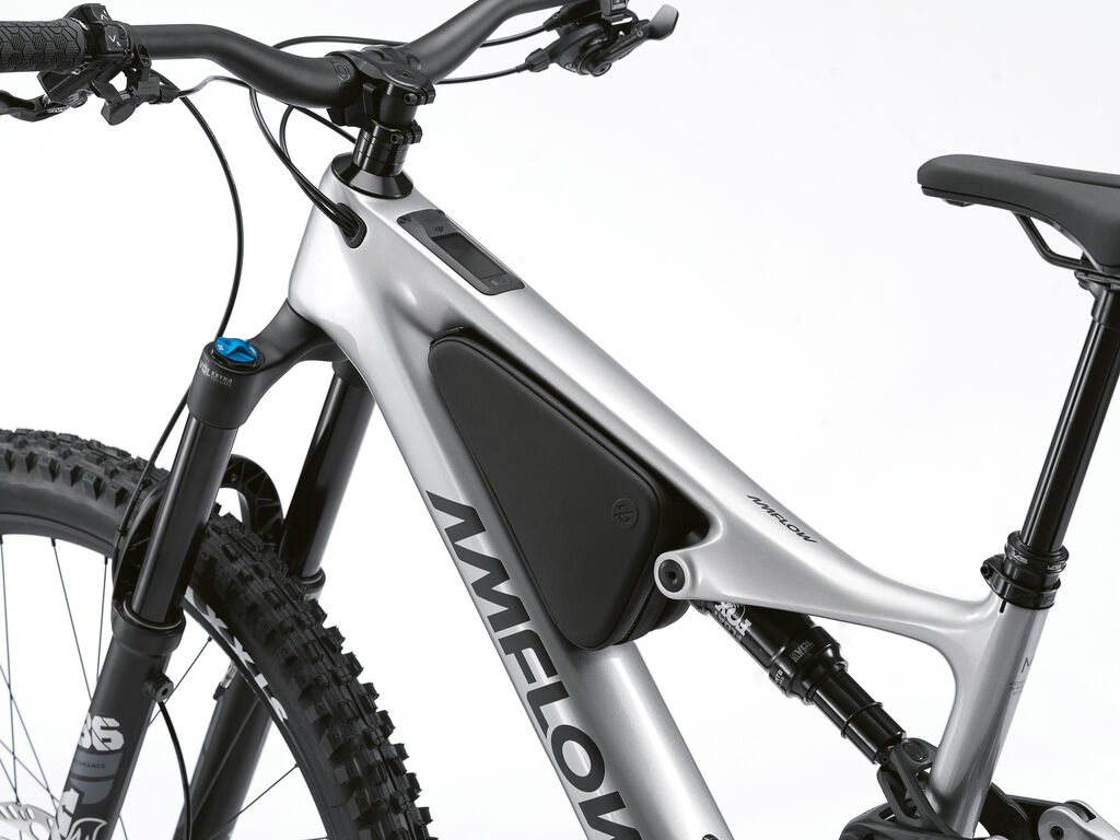 The Amflow PL is an ultra-light electric mountain bike. Weighing just over 2 kg, its carbon frame ensures agility and an effortless riding experience. The bike features internal cable routing, a short front fork for more stability when cornering and a four-link structure for improved pedalling feedback. The DJI Avinox drive offers high performance with a compact design and is integrated inconspicuously into the frame. Despite the electric components, the Amflow PL resembles a classic mountain bike.