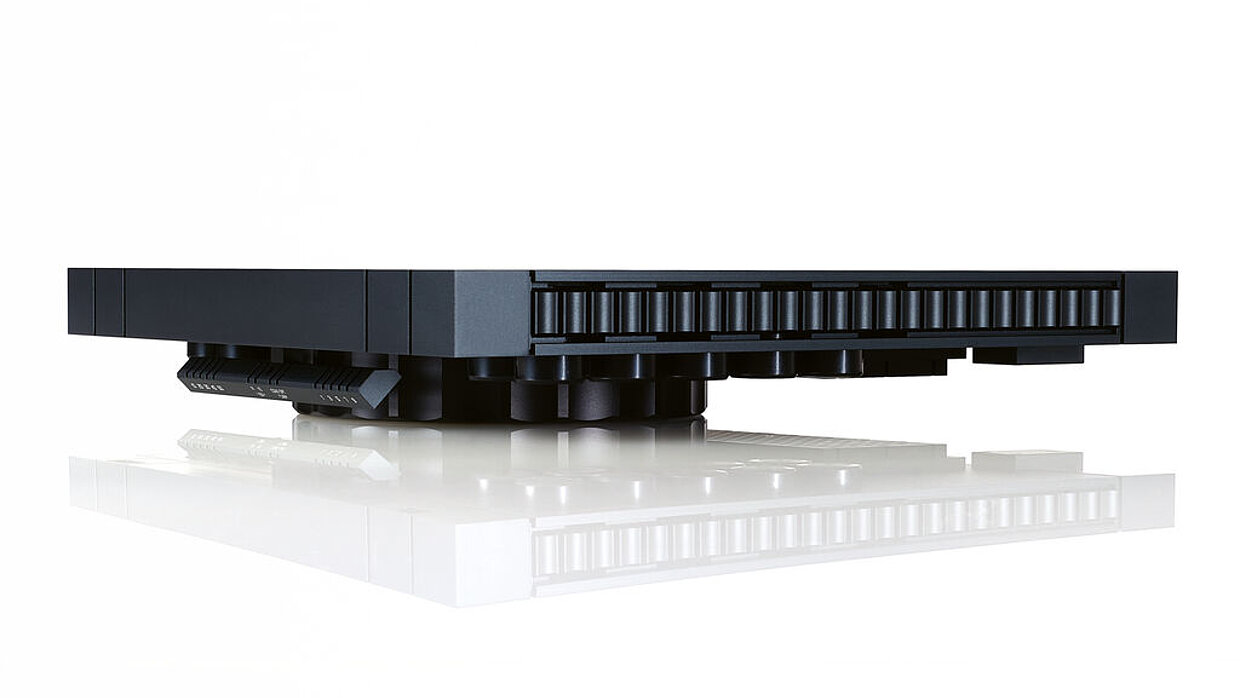 The AMP-23R is a compact amplifier for speakers and headphones. The ergonomically faceted volume control and the front panel with just one button to control all functions provide a clean and clear layout. A patent-pending display shows the volume by means of dots that gradually fill and empty again. The wavy shape of the vents is particularly effective and creates a charming contrast to the otherwise linear and minimalist design.
