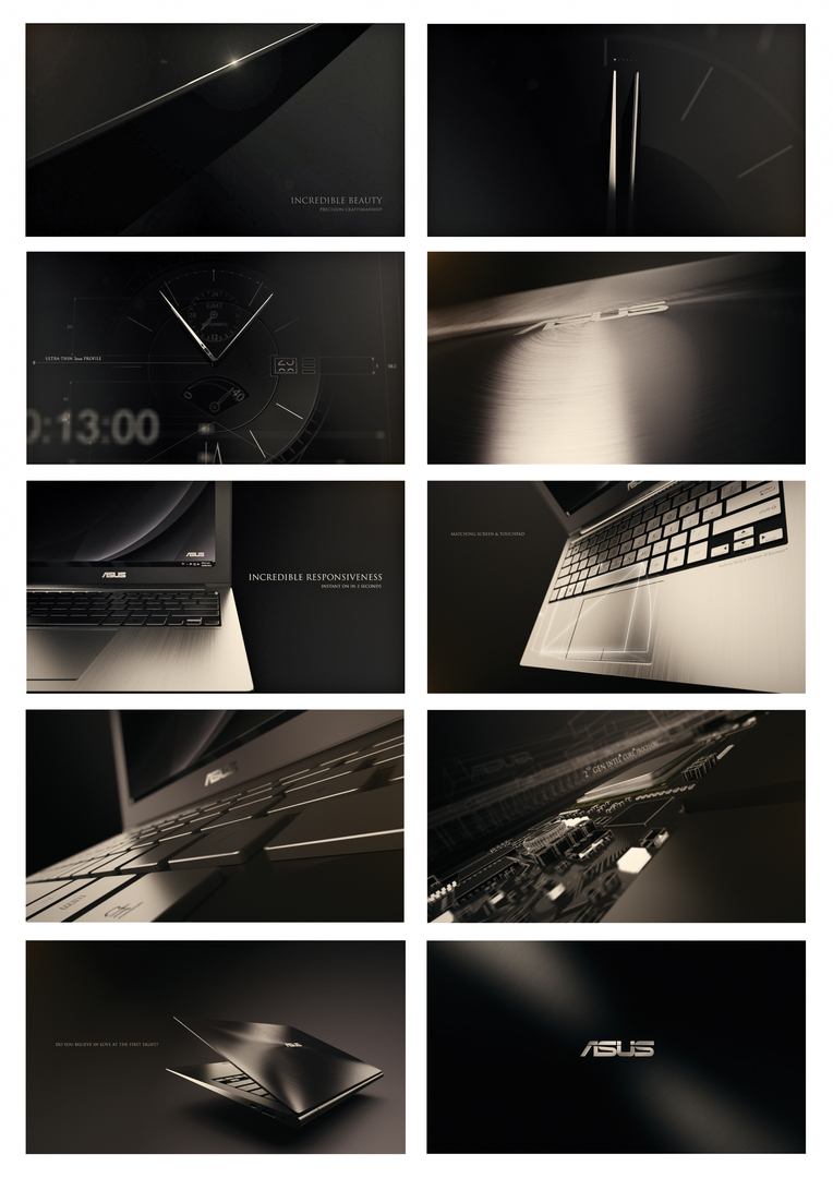 Inspired by “the beauty of timepiece design”, this laptop computer screensaver was conceptualised with an aim to underscore the original Asus Zenbook design concept. The objective is to show that embracing the embedded “precision craftsmanship” concept from the wristwatch-making industry involves, in terms of design, applying numerous unique production processes in order to create such a high-quality notebook. The screensaver video serves as a visual tool to communicate with end users. It possesses high aesthetic value and offers a visually compelling experience.