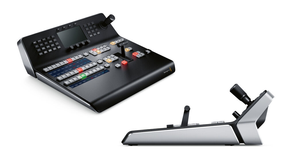 The ATEM 1 M / E Advanced Panel is a compact live video production control panel. It was designed in particular for sports events, concerts and TV broadcasts in which multiple cameras are used simultaneously. With its compact and robust CNC-milled aluminium housing, the control panel presents a clearly arranged work surface with ergonomically placed keys for quick access to important functions. Time-consuming navigation through complex menus is avoided; instead, the user controls transitions, video effects and up to 20 video inputs in real time.