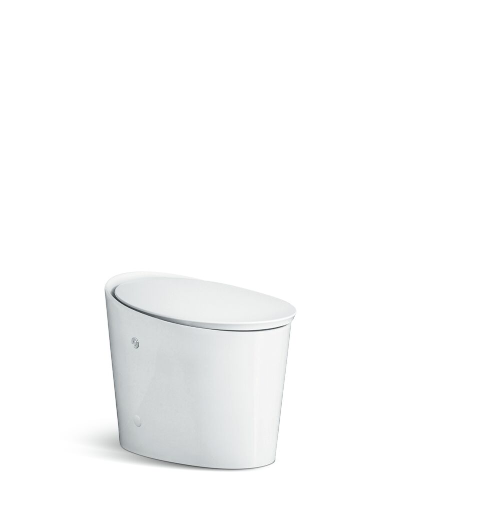 Avoir is a tankless, battery-powered toilet. Instead of a power connection, four AA batteries suffice to operate the toilet for one year. The round flush button with a circle of light can be installed anywhere in the bathroom. An emergency flush button on the toilet body itself operates the 360-degree flush in the case of battery failure. Organic shapes and gentle curves lend the tapered toilet a friendly, modern appeal.
