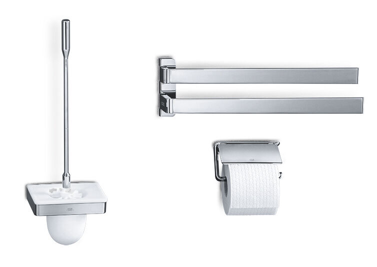 Axor Universal Accessories is an equipment system suitable for the whole collection. It includes railings, storage shelves and handles, which can be used for individual or comprehensive solutions in bathrooms and to some extent in kitchens. Premium single components ensure harmonious overall accessory combinations that are both coherent and visually pleasing. If required, they can be rearranged or complemented with additional elements. This makes it much easier to customise room designs.