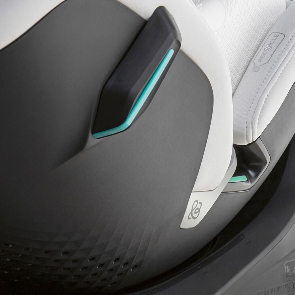 The Babyfirst EZ I is suitable for children up to the age of seven and focuses on safety, comfort and ease of use. It can be rotated and tilted with the app, an in-car system, voice commands or buttons. Built-in sensors ensure proper installation, while a physical unlock button prevents accidental use. The seat has sleek contours and a sophisticated appearance. Carefully crafted surface textures are integrated into the design, such as the diamond pattern of the rear ventilation, as well as the pleasant feel of the textile sections.