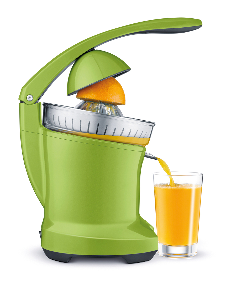 Functionally as well as optically, this citrus press is a successful combination of manual and electrical press and thereby radiates freshness.