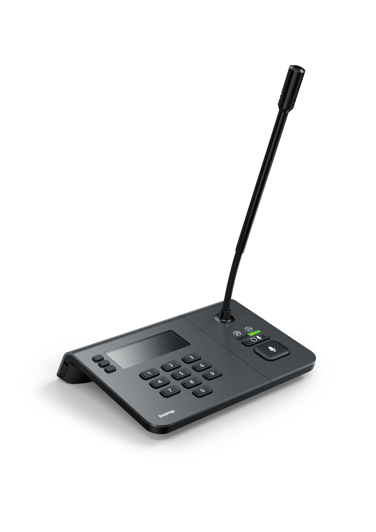 The Biamp NPX Paging Station Series convinces with a convertible design: it appears to float on the table or desk, while conveying solidity and reliability when mounted on the wall.