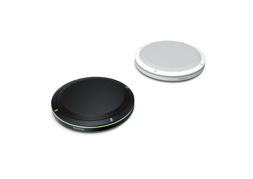 Biamp Parlé is a series of microphones developed for use in conference rooms. The series consists of tabletop (Biamp Parlé TTM) or ceiling-mounted (Biamp Parlé TCM) microphones, each available in black or white. The tabletop microphone has a neat, minimalist shape and is relatively small. The devices are equipped with 360-degree Beamtracking technology, which actively follows conversations around the table and mixes them intelligently. This makes remote participants feel as if they were following conversations in the same room.