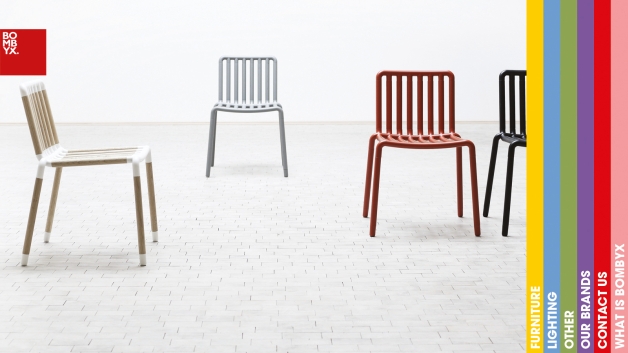 bombyx is a virtual boutique showroom representing international top brands in the fields of furniture, lighting and décor objects. The website is based on a navigation-centred interface which provides easy use and orientation while the user is searching for the desired objects. The design is muted and strictly following a clear concept that consciously focuses on the differently coloured bars and full-screen images.