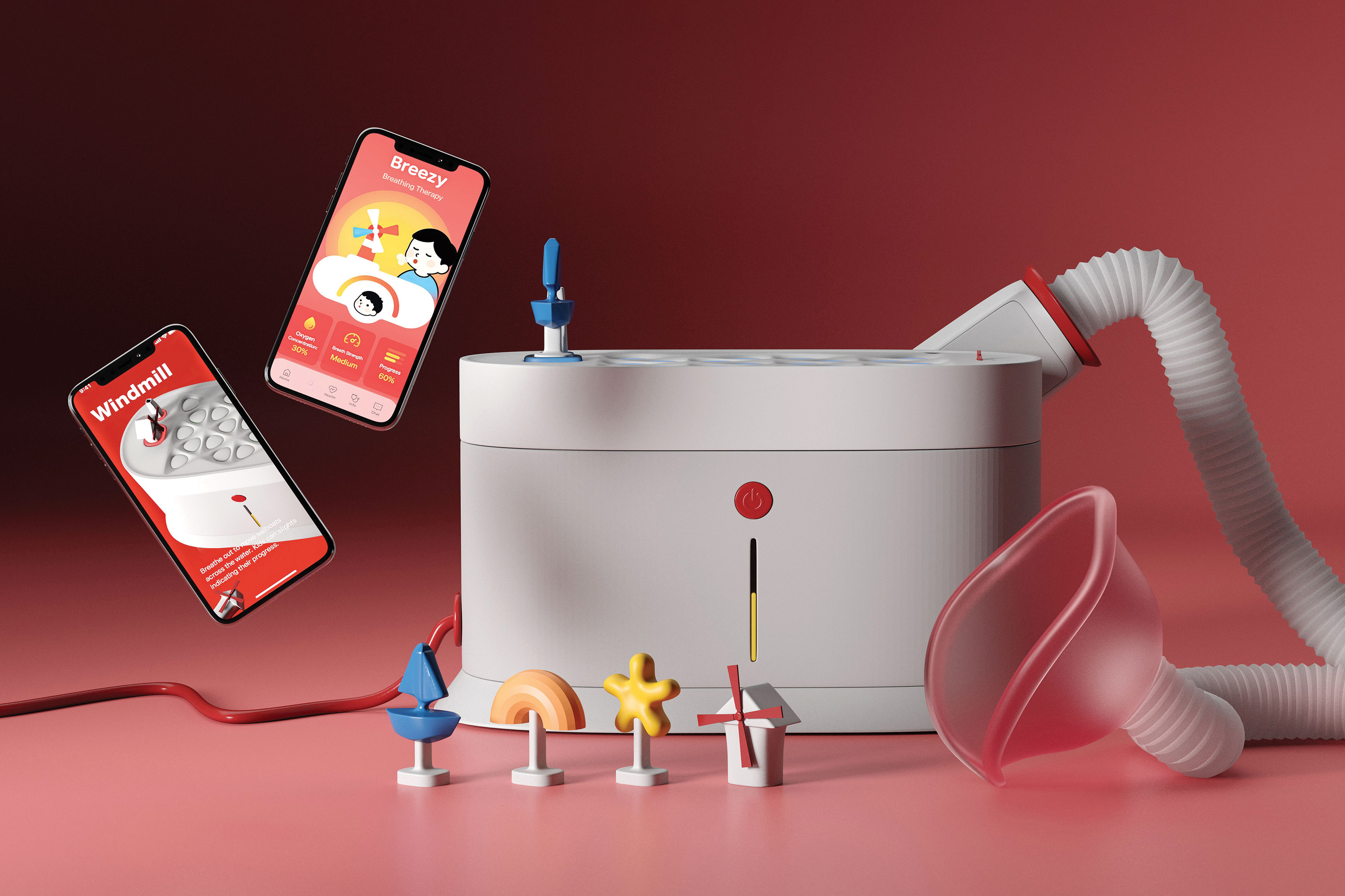 Breezy is a child-friendly respiratory device that combines oxygen therapy with interactive breathing exercises. Gentle colours, soothing animations, and light-based feedback turn treatment into play, rewarding progress with visuals like blooming flowers. Designed for kids with chronic asthma or recovering from pneumonia, Breezy merges medical efficacy with joyful engagement to support lung function and encourage consistent, motivated recovery.