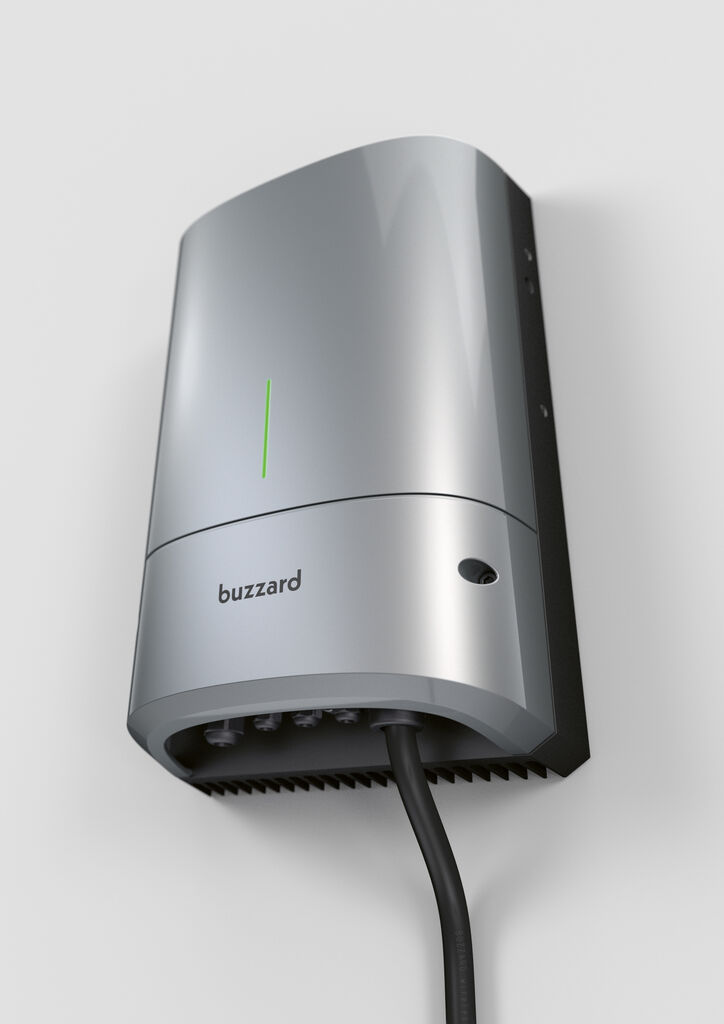 The Buzzard40 charging platform enables wireless opportunity charging for industrial electric vehicles such as AGVs, AMRs and robots. The system consists of a vehicle-integrated module, a wallbox and a charging pad and supports up to 60 volts at up to 40 amps. Inductive charging eliminates contact points and maintenance, which increases safety and minimises downtime. The modular design allows it to be used in new or existing vehicles regardless of the battery type.