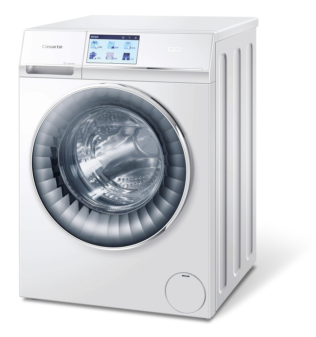 A prominent design element of this washing machine is the door with a diamond finish which gives this rather functional product an emotional component.