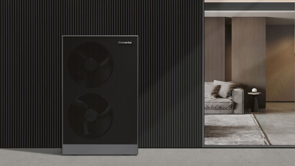 The Casarte Five Constant Air System Solution is a modular air conditioning system for living areas, combining heating, cooling, ventilation and air purification. It consists of a heating pump, fan coil units, air sensors and wall-mounted controls with a clearly structured user interface for individual rooms, a central control display and an intelligent control module with cloud connectivity. All components follow a consistent design concept, featuring vertical louvres, matt surfaces and precisely contoured edges.