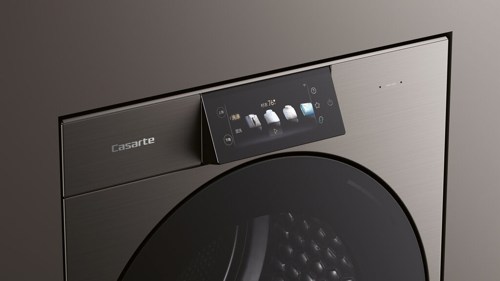 The Casarte Maestro Series combines a flush-mounted design of the front with a high level of user-friendliness. The adjustable-angle display makes it easier to select a programme, which is also possible without contact thanks to the integrated voice control. For easy loading, the door opens automatically as soon as a hand approaches the window. The combination of stainless steel, glass and aesthetic details like the playful pattern on the ventilation grille lends the appliance a premium appearance.