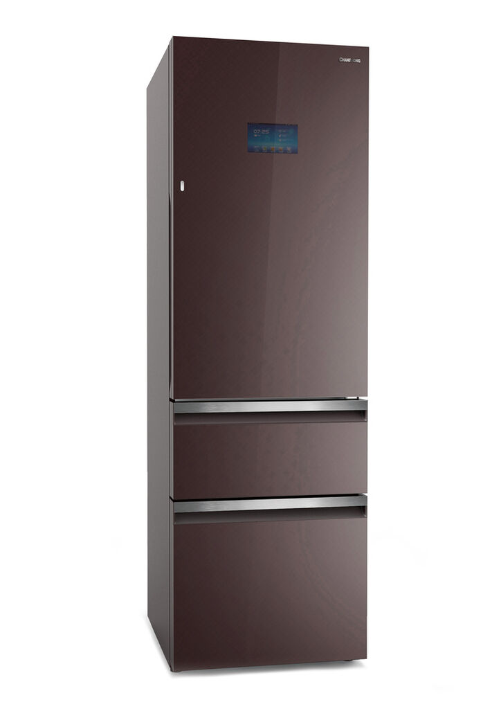 The Changhong Cabinet refrigerator shows an elegant, minimalist appearance. Its double door design allows for easy access to frequently needed food. In addition, less energy is consumed when the door is opened. The temperature of the cold fresh drawer, located at the bottom of the main compartment, can be independently controlled using its own touch operation panel. The appliance features a microprocessor with a tracking system that helps consumers, e.g. to draw up a shopping list. Users can interact with the refrigerator using the touchscreen on the door or remotely from a smartphone or computer.