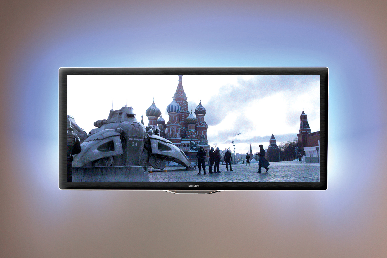 This LED television, with a format of 21:9, is a 3D TV in cinema format evincing high image and sound quality. The housing is made of brushed aluminium and expresses modernity and high performance. Discreetly arranged to the side, the control keys are hardly visible yet can be easily operated. The television’s three-sided Ambilight background lighting highlights the cinematic experience, which is additionally enhanced by the innovative sound system with rear speakers and by the screen format.