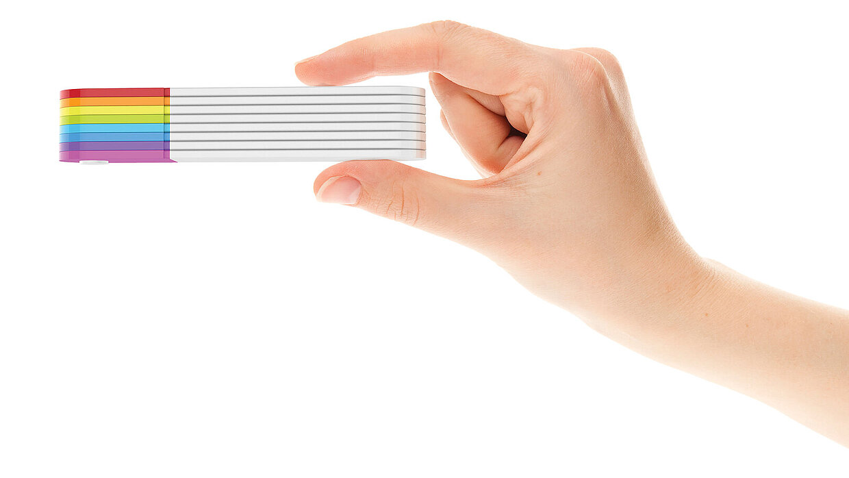 The tails of these paint tubes are specially designed with a translucent but tinted colour material. This is meant to come in useful for colour mixing during painting. Superimposing one paint tube over another helps the user perceive the new colours that can be generated. This is particular conducive for children in the painting process, especially because a child’s colour mixing perception is weaker when they are younger. This will also boost a child’s colour perception over time and keep their interest in painting.