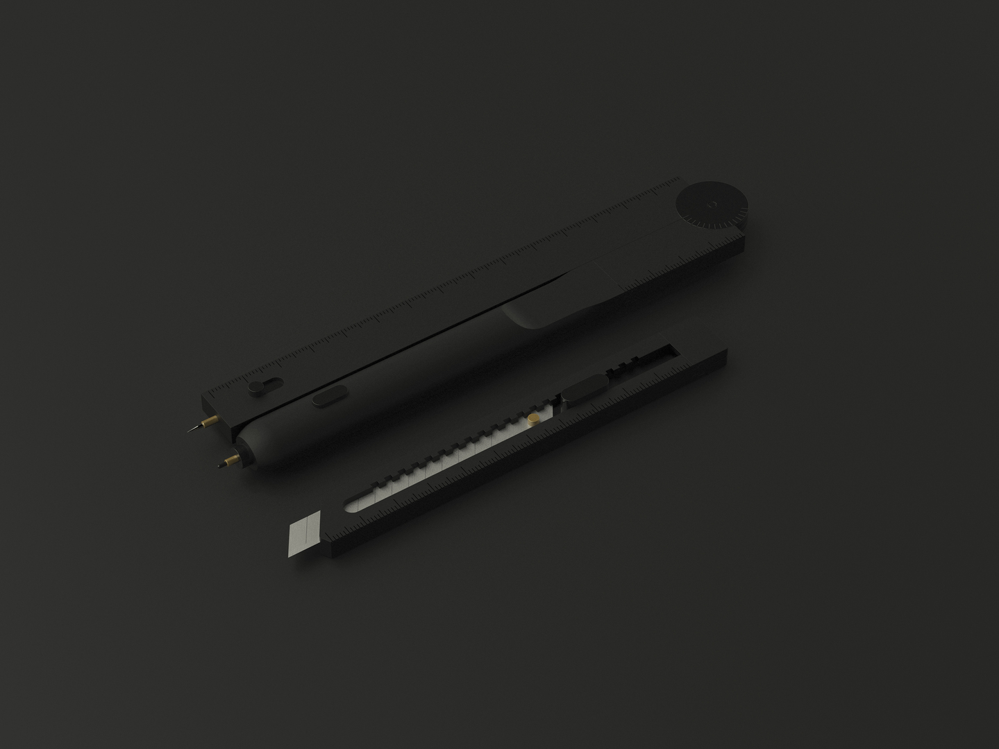 COMPACT STATIONERY is a stationery set with an effortless sliding system. Its components can be assembled to create a ruler, a compass, a pencil or a craft knife. This set of compact tools saves desk space and are highly portable. Its design is centred around the lifestyle of an urban working individual who pays attention to details and minimises unnecessary clutter. The language for the tools provokes confidence, keeping only the most important details.