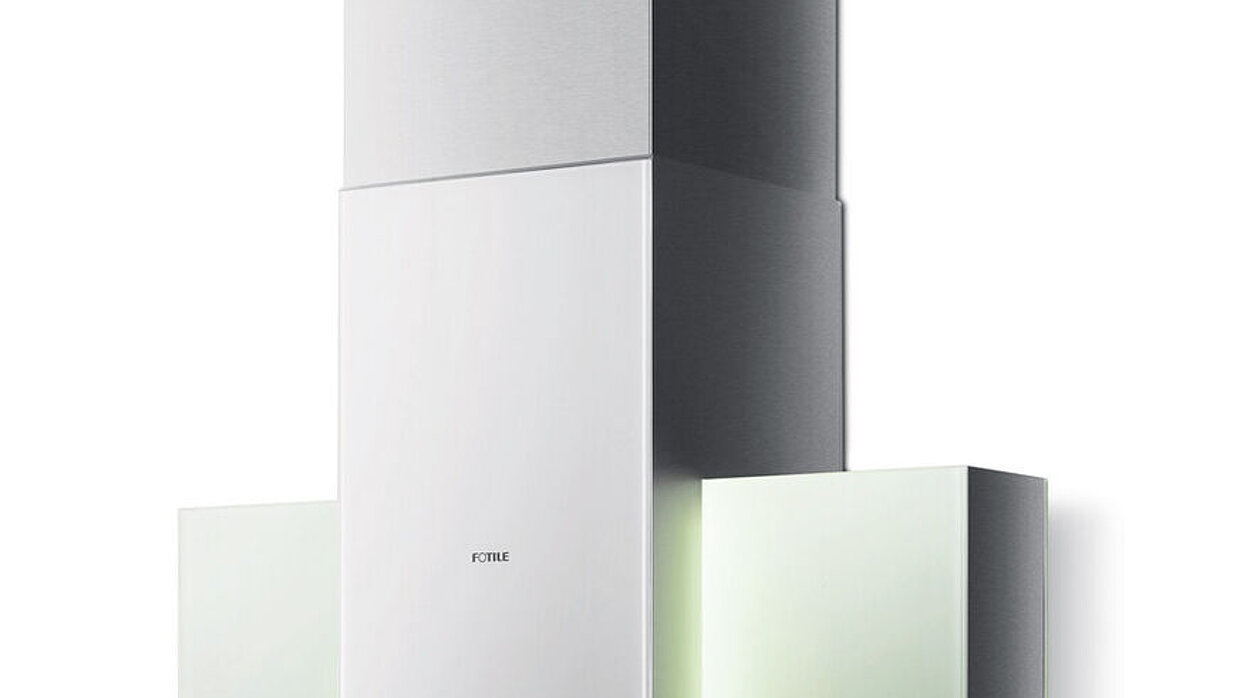 A multifaceted housing of stainless steel and glass elements as well as precise engineering define the eye-catching and elegant appearance of this range hood of the J series. The touch operating panel is integrated centrally in the front. From a functional viewpoint, the hood offers a twin fan system which is incorporated in the stainless steel shaft. By means of this, it uses the entire one-metre width to extract oily vapours and frees them from fats.