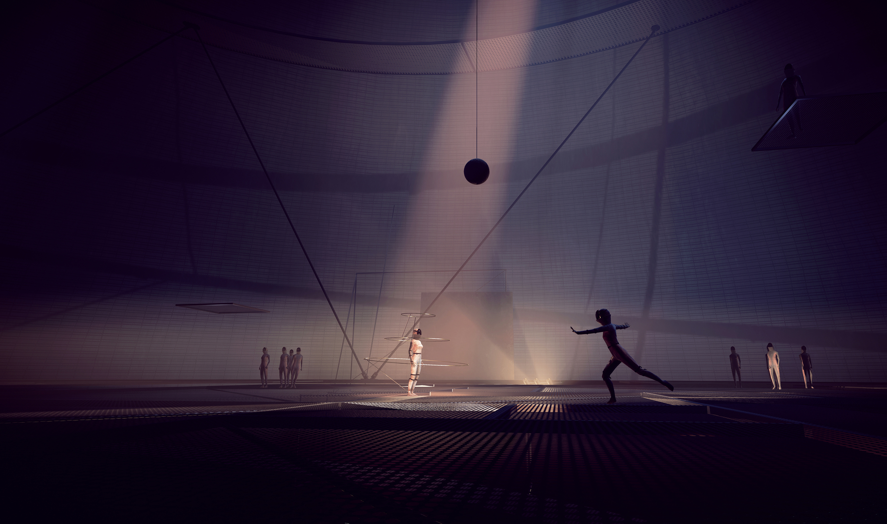 Four visitors can simultaneously immerse themselves in the virtual dance theatre inspired by the Bauhaus school, and experience an interactive choreography on three levels within a vast stage space with the dance machines. Visitors interact with the movements of real dancers, which were recorded by motion capture and stored in a database. When users enter the virtual space, the choreography conceived by humans, the users’ personal actions and the machine algorithm intertwine and create new forms of dance and spatial movements.