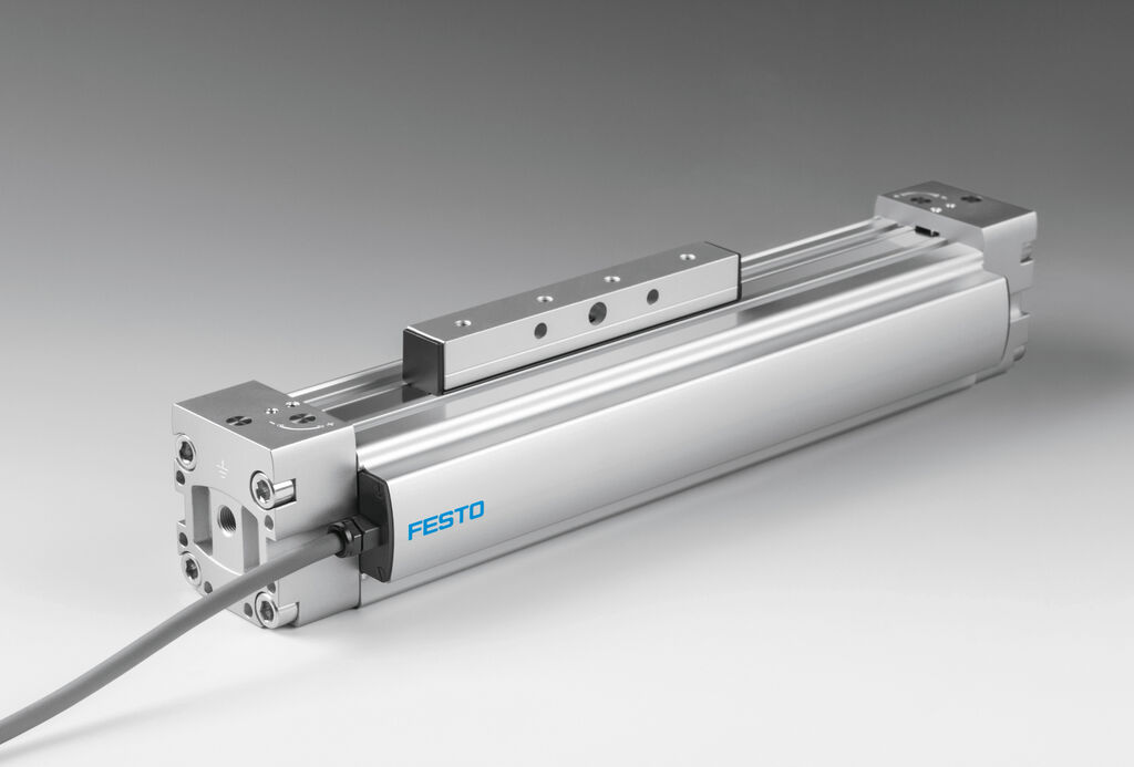 A wide variety of guides are utilised in manufacturing systems. The DDLI pneumatic linear drive adapts optimally to these guides. It is used in nearly every industry sector as a component for automation tasks. Depending on the mounting position, loads of up to 180 kg are positioned with precise accuracy. The special feature of the DDLI is its integrated displacement decoder, which performs absolute measurements in a contactless way.
