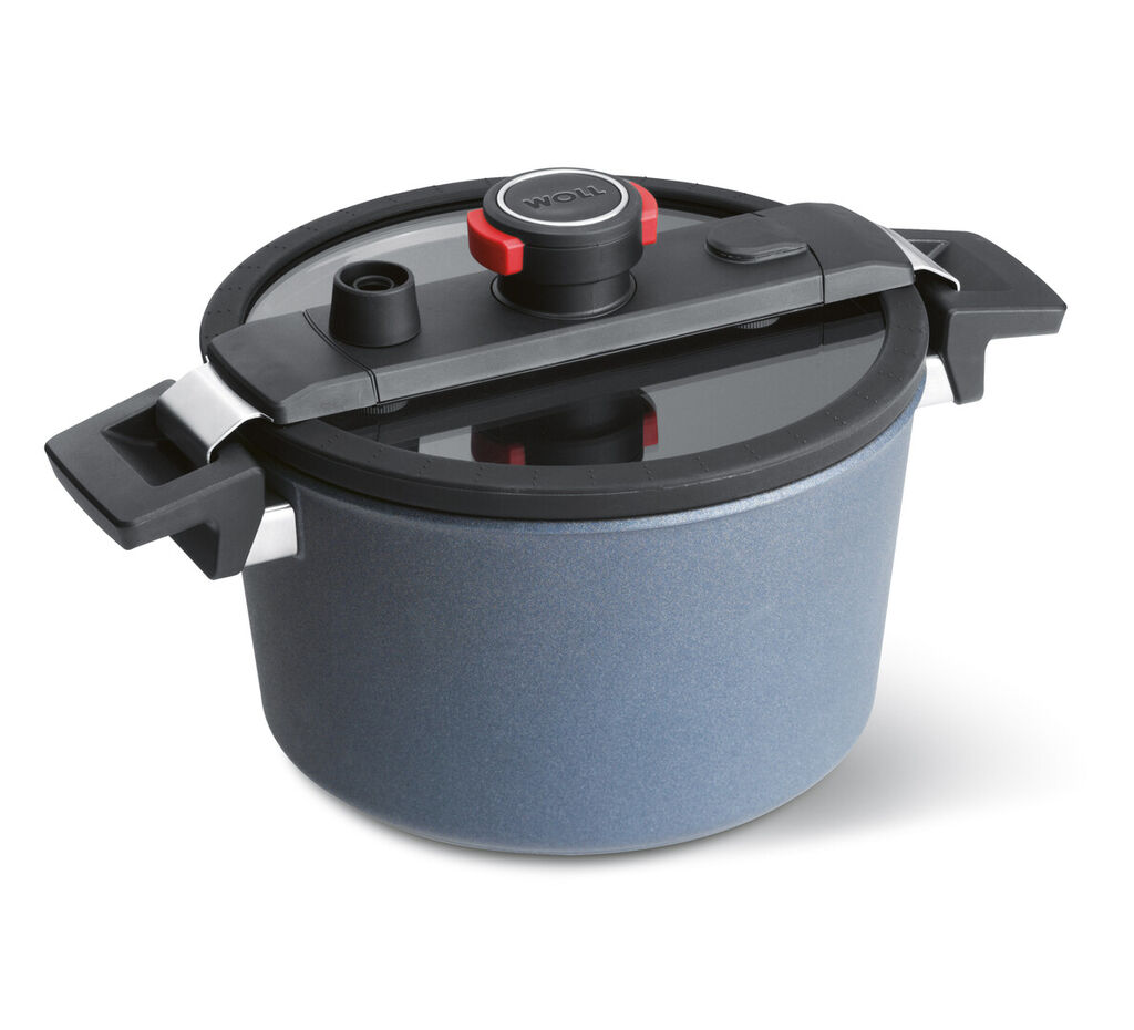Appealing in colour, this low-pressure cooker merges comfortable handling with convincing functionality.