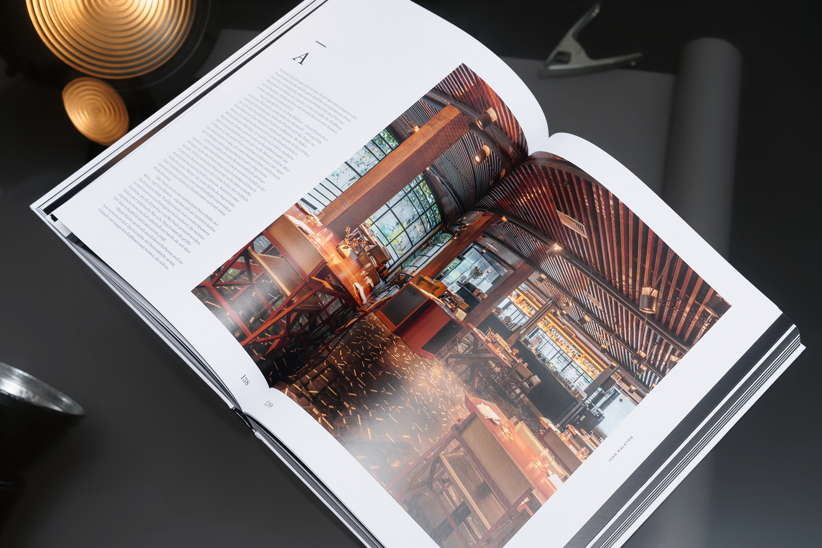 The seventh volume of this book series contains expressive portraits of the various guest chefs at the restaurant Ikarus, as well as recipes for their respective menus and a handwritten credo, among other things. The introductory pages of the individual chapters are designed with silver printing on solid-coloured, black uncoated paper made with lightfast pigments. The biographical data of the chefs as well as the architectural photos of the restaurant are also printed with silver, using the UV printing process. The cover is coated with hot foil and embossed to round off the high-quality design of the coffee table book.